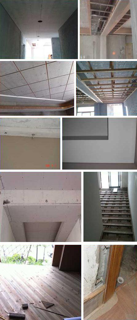 ⑦ 吊頂基層木龍(直接與天棚接觸固定的木龍)必須用膨脹螺栓和木樁釘固定,膨脹螺栓間隔800 mm一個,不能將拉桿木龍直接插入天棚水泥板。